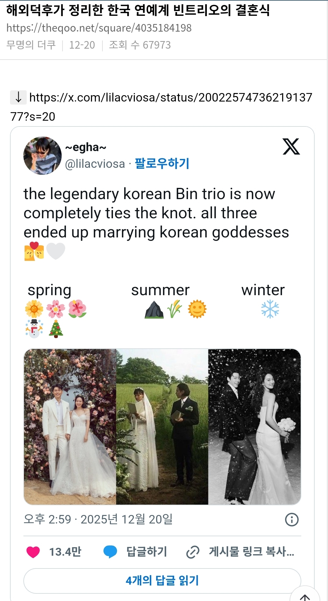 해외 덕후가 정리한 한국 연예계 빈트리오의 결혼식.jpg 27 0 01.03 17:00 다음 페이지 이전 페이지 가을 결혼식은 누가 있을라나~~~~~~~ 출처 : https://m.bboom.naver.com/best/get?boardNo=9&postNo=4356169 이전글어디 뱀따위가 다음글의심이 많은 여자친구 댓글[0] 네이버 뿜 댓글[] 네이버 뿜 댓글 쓰기