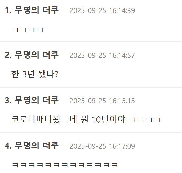 오징어게임 나온지 벌써 10년 됐다고 하면 다들 놀람.jpg 7 0 10.24 17:00 다음 페이지 이전 페이지 화들짝 놀랐넼ㅋㅋㅋ 출처 : https://m.bboom.naver.com/best/get?boardNo=9&postNo=4334960 이전글폭군의 셰프 최종화에서 건진 짤 다음글올해 벌써 7,000을 모았다는 대학생 댓글[0] 네이버 뿜 댓글[] 네이버 뿜 댓글 쓰기